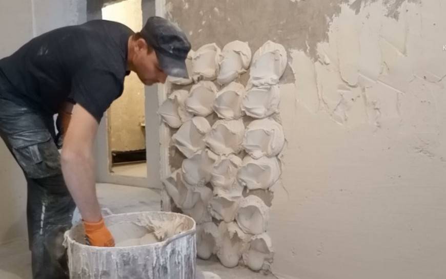 В первую очередь со стен снимают старое декоративное покрытие до основания. На обрабатываемой поверхности не должно быть остатков клея, плитки, герметика. Затем стены шпаклюют и выравнивают с помощью санирующей штукатурки. Это особый вид песчано-цементной смеси, который нужен для: