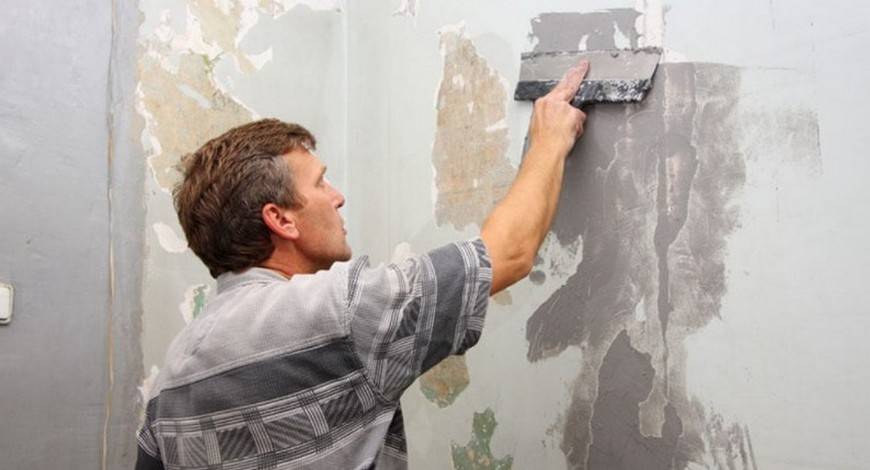 Поверхность необходимо очистить от старой отделки. Обычно осыпающееся покрытие получается снять, обильно побрызгав его водой и через некоторое время удалив скребком. Затем стену обеспыливают мокрой тряпкой. Пораженные грибком или плесенью места чистят и обрабатывают антисептическим составом.