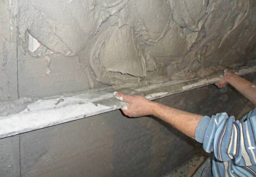 У получившейся поверхности не должно быть волнообразных перепадов и уменьшения толщины с одной из сторон. До процедуры обрызга стена немного смачивается водой.