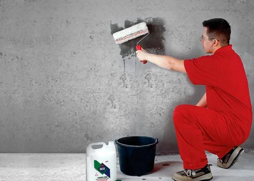 На стену наносят грунтовку. Под венецианку и иные дорогие декоративные смеси накладывают состав от того же производителя, специально предназначенный для работы с данным типом продуктов. Если планируется выравнивать стены цементом или использовать его как финишный слой, грунт подбирают соответствующий.