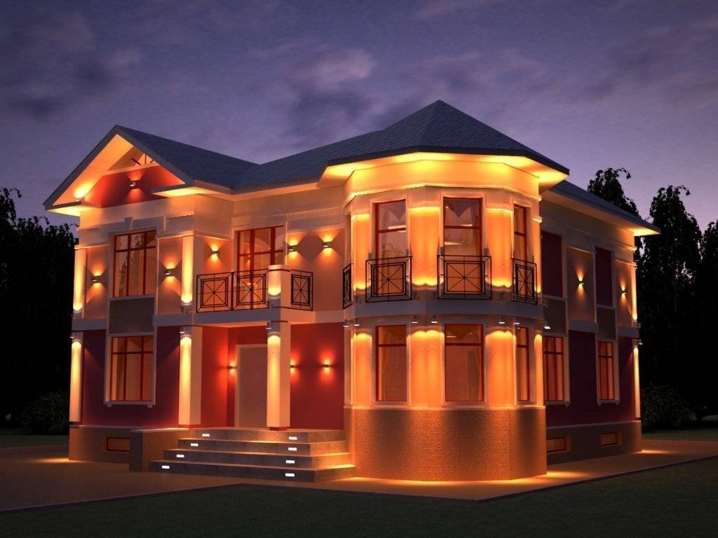 Если говорить конкретно о декоративном освещении наружных стен дома, нужно упомянуть о нескольких самых распространенных его типах, которые представляют дом в самом выгодном свете. Это: