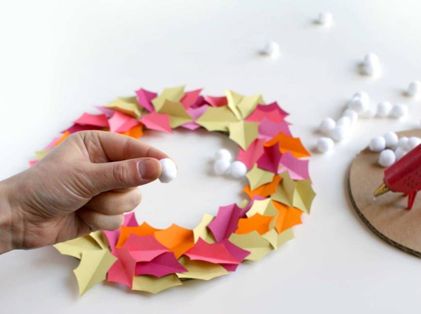 Также обратите внимание, что листочки должны быть расположены в хаотичном порядке. Только так венок будет выглядеть более натуральным
