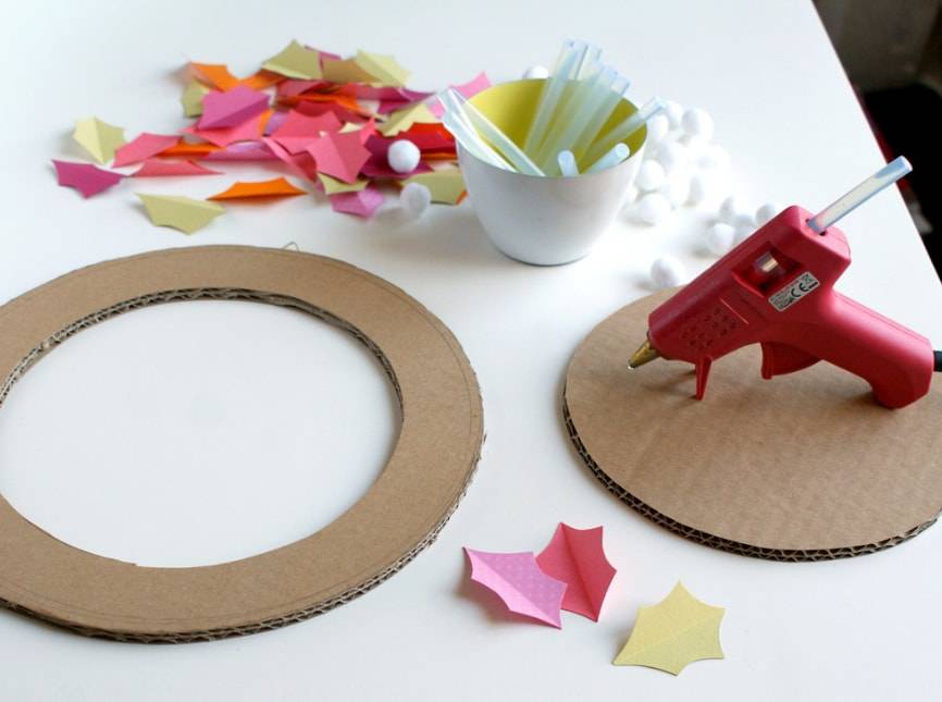 - Из картона вырежьте несколько разноцветных кругов, сердечек или звездочек.