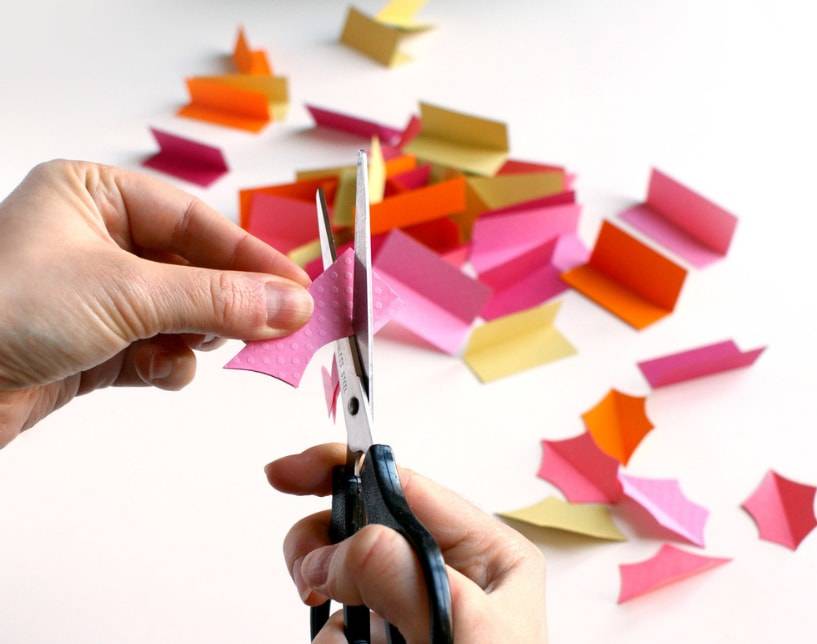 Обрезаем бумажные заготовки, как показано на фото, после чего расправляем каждую из них.