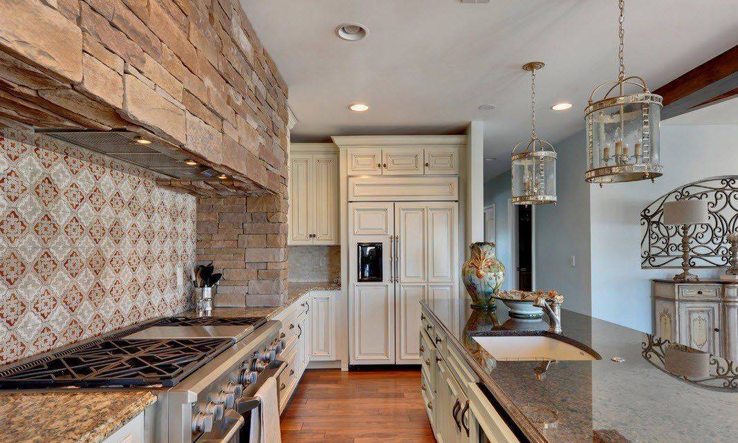 Отделка фартука кухни стиле прованс декоративным камнем