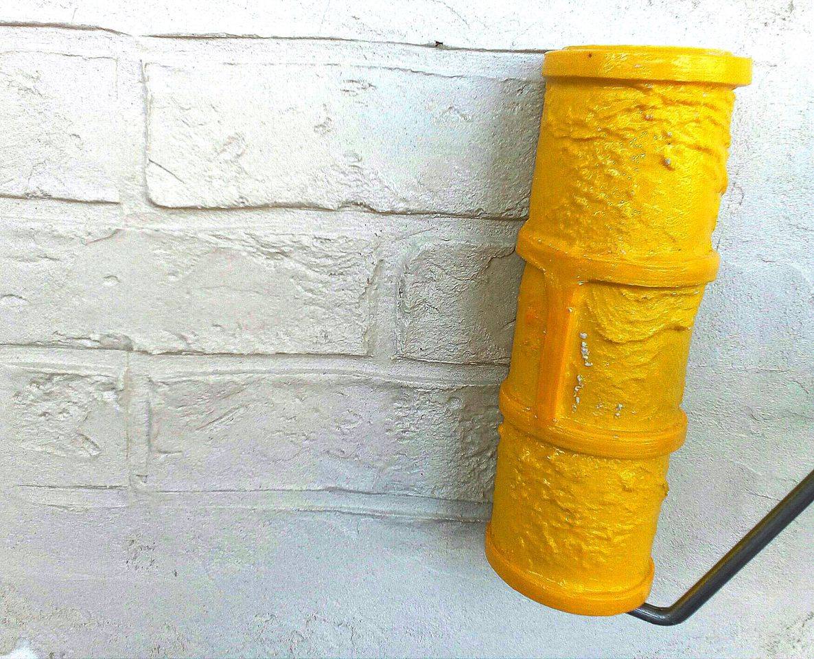 - Берем старую зубную щетку и краску «жженая кость». Обмакиваем щетину в краску и разбрызгиваем по стене, имитируя неоднородность и фактуру глиняного кирпича. Завершающие этапы