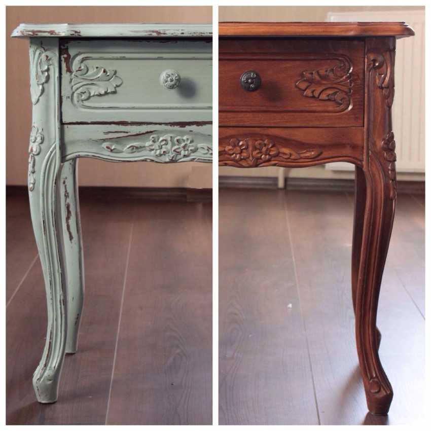 Вы можете, как рисовать отдельные рисунки на мебели, так и красить ее полностью. Здесь все зависит от ваших художественных способностей. Подобный способ окрашивания можно совместить с техникой накладного декора для мебели.
