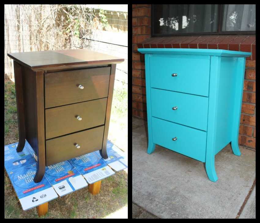 Пример отреставрированной прикроватной тумбочки. Теперь это яркий элемент интерьера и функциональный предмет мебели в спальне