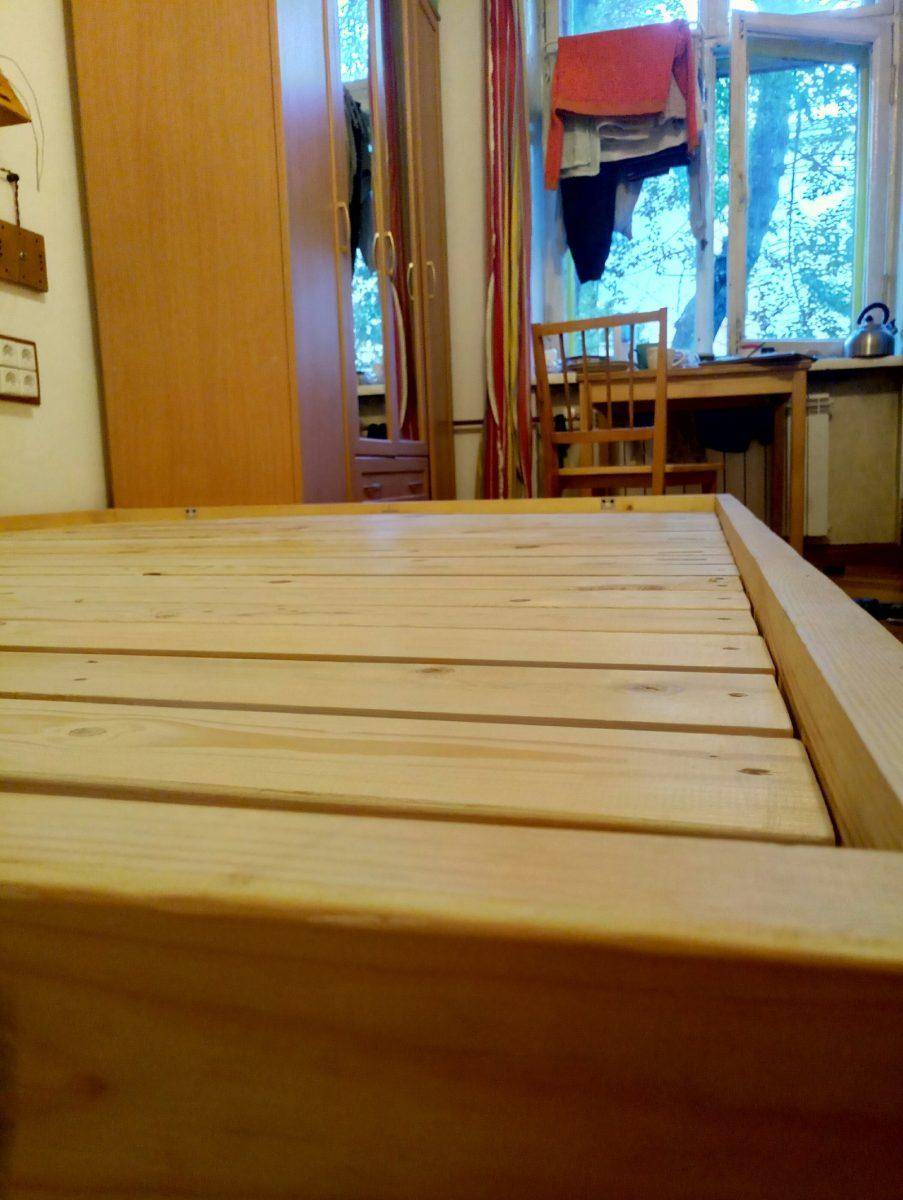 Их важно равномерно распределить по всему периметру кровати. Они монтируются саморезами насквозь