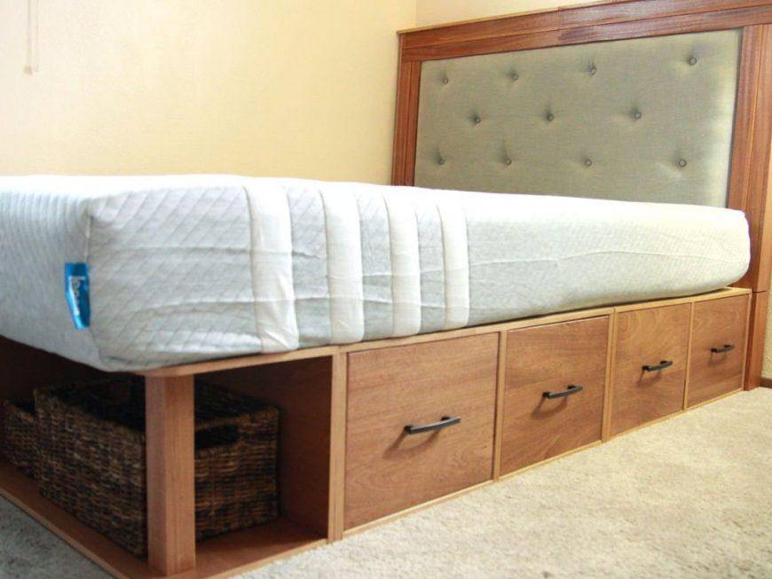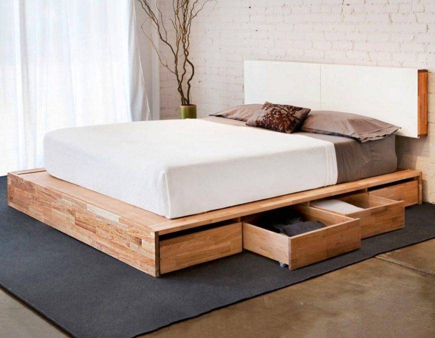 Если подобные работы никогда не выполняли, то двуспальную кровать лучше всего разместить на подиуме, изготовленном из ламинированного ДСП. Смастерить его несложно, с работой справится любой начинающий мастер. Не стоит ломать голову над устройством выдвигающихся элементов и подъемных частей – в подиуме свободное пространство уже предусмотрено.