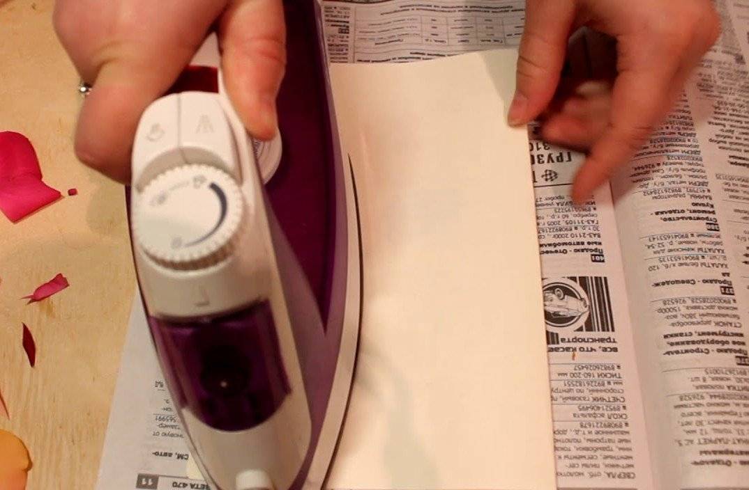 На гладильную доску положите лист бумаги. Сверху листья. Еще один лист бумаги. Включите утюг и потихоньку без особого нажима начинайте сушить растения. При этом очень хорошо сохраняется исходный цвет.