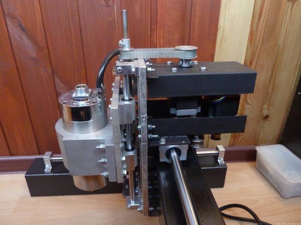Достаточно поставить конструкцию на каретку станка и можно приступать к работе. Такой вариант оптимально подойдет для эксплуатации дома. Он не обеспечит высокой точности, что естественно, учитывая особенности конструкции, однако остается вполне экономичным способом реализации домашней установки. Прежде всего, пропадает необходимость комплектации дополнительными деталями, необходимыми для повышения точности изготовления.
