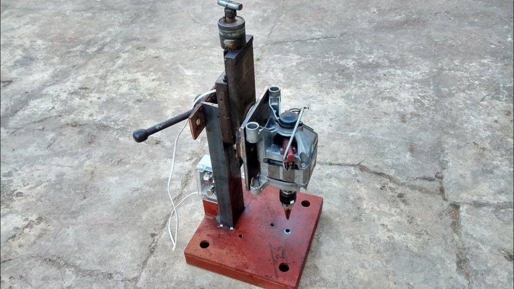 Готовый самодельный сверлильный станок на основе двигателя от бытовой техники.