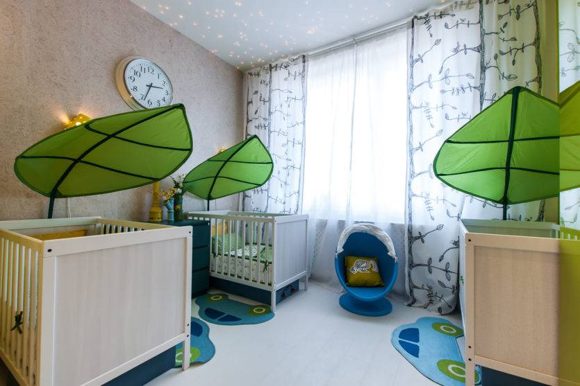 Дизайн общей комнаты должен устраивать всех троих малышей, независимо от их пола, возраста и вкусов. Добиться этого вам поможет: