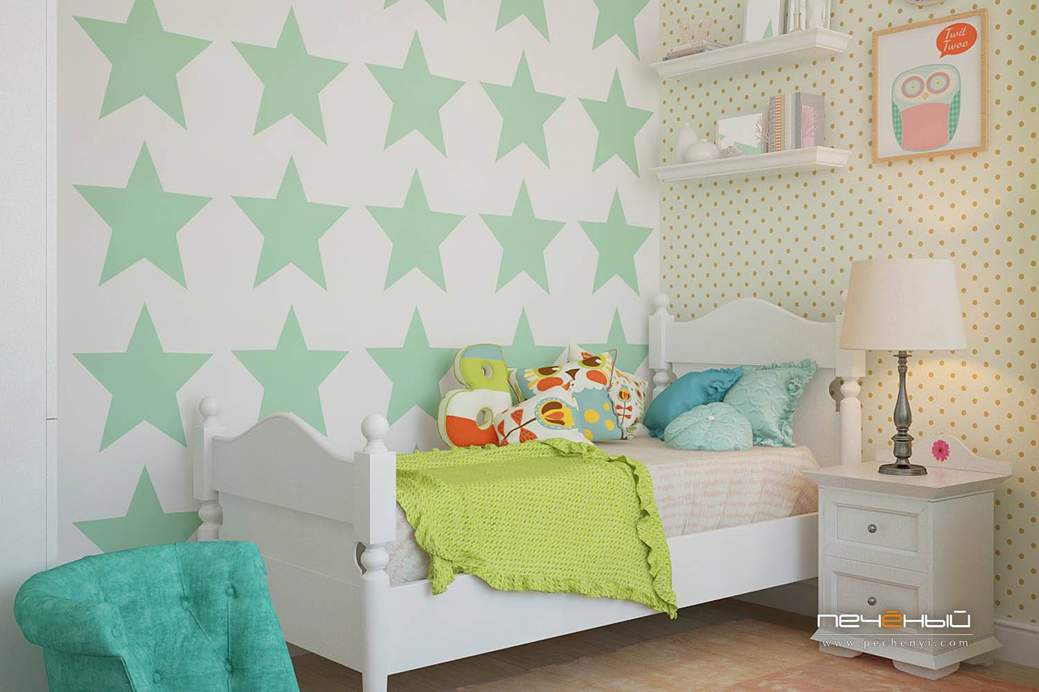 Если это комната девочки, то можно выбрать такие интересные цвета, как персиковый, лиловый, бирюзовый. Для мальчика идеальный вариант — использование светло-зелёного или бежевого цвета.