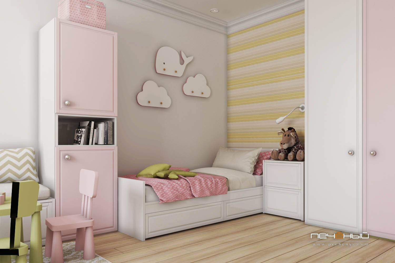 Часто в одной комнате приходится размещаться двум детям. Такие детские мы предлагаем решать в интересах старшего ребенка. Ведь чем старше человек, тем определенней его вкус. А значит для него важнее пространство, в котором он живет.