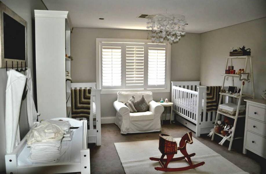 Детскую новорожденных близнецов можно сделать в одинаковой цветовой гамме и создать гармоничный дизайн. Для двойни разного пола, подойдет индивидуальное оформление, подчеркивающее значимость каждого младенца. Помещение визуально разделяют на два участка за счет персональных украшений или разной оттеночной палитры.
