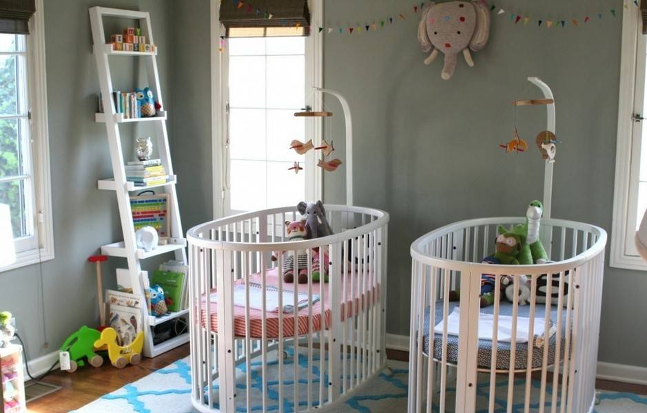 Для максимального удобства, позволяющего одновременно кормить, убаюкивать и переодевать новорожденных двойняшек, лучше расположить колыбели рядом друг с другом.