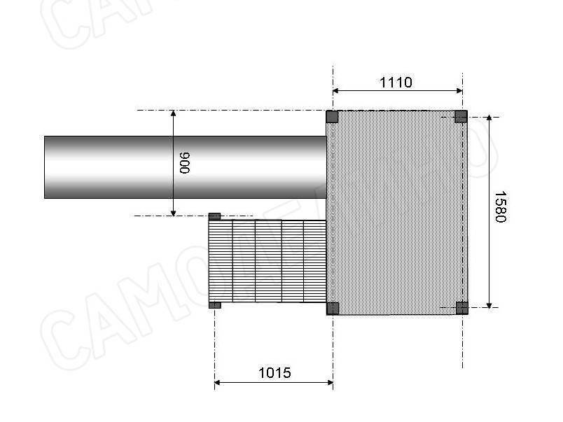 Вид сверху позволяет оценить габариты постройки. В моем случае было удобно разместить подъем и спуск на одной стороне. При этом лесенку и горку можно расположить по разные стороны и уменьшить размеры верхней площадки вдвое.