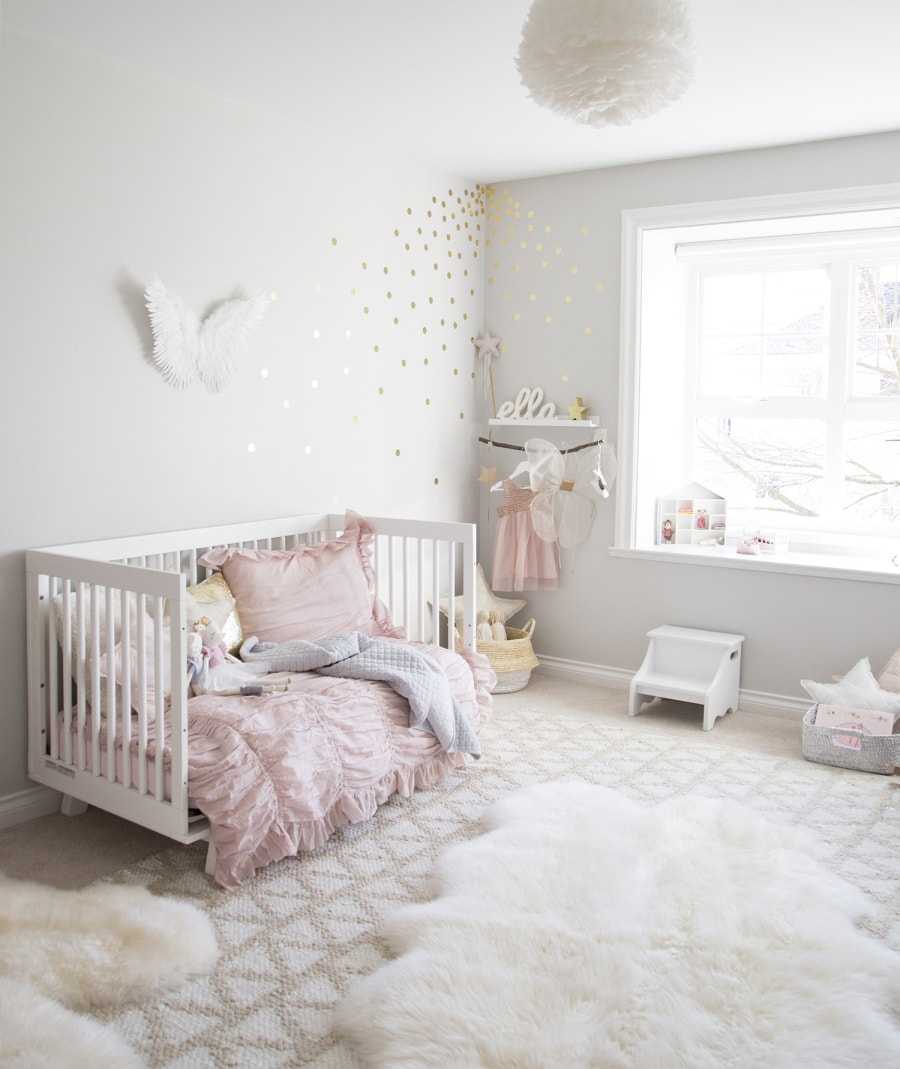 - Белый. Сочетание белого и розового цвета добавит комнате изысканности, торжественности и нежности. Например, стены и постельные принадлежности можно оформить в нежно-розовом цвете, а мебель в детской сделать белой.
