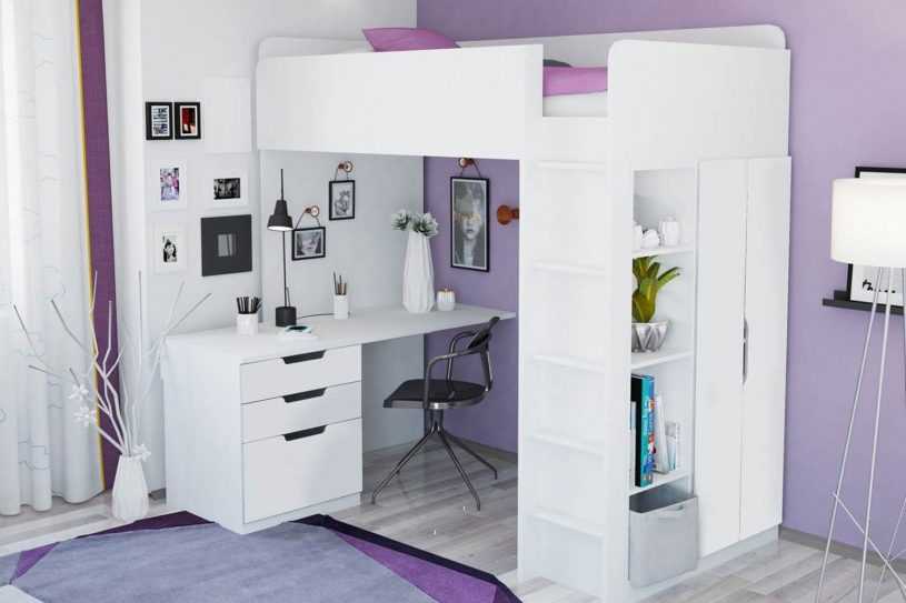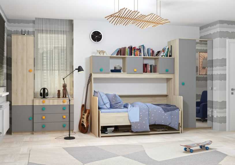 Для экономии пространства отлично подходит двухъярусная кровать. Она освободит значительную часть площади, которую можно отвести под стол или спортивную зону. Такие кровати бывают: