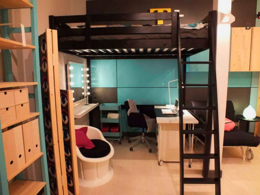 Для ребенка немного постарше или подростка лучше приобрести модель кровати-чердака выше полутора метров, чтобы такая модель вмещала в себя как место для сна, так и необходимые шкафы, полки и компьютерный стол. Если конструкция такой кровати-чердака довольно крупная, можно предусмотреть на первом ярусе даже зону для отдыха в виде дивана или пуфиков, если это позволит размер такого изделия