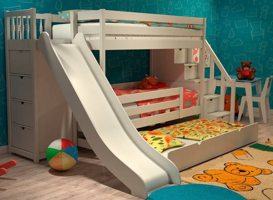 Является небольшим веселым аттракционом, который никогда не оставит равнодушным. Стационарная или съемная горка, за счет своей функциональности и декоративности, отлично дополняет всю мебельную конструкцию.