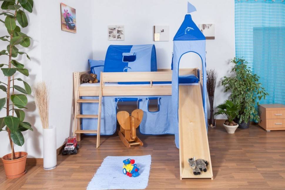 Представляет собой двухъярусное сооружение со спальной и игровой зоной, которая может располагаться, как внизу, так и наверху. Уголок для игр иногда оставляют полностью свободным или оборудуют небольшими полками, комодом, вместительными тумбами для игрушек, качелями и другими элементами.