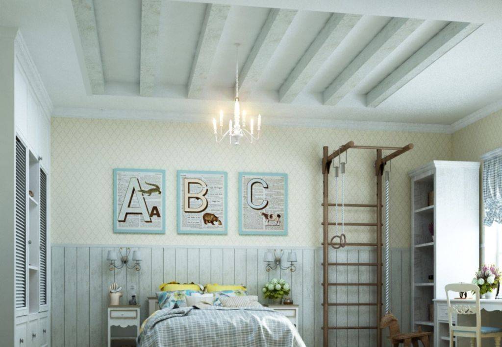 Потолки в детской делают ровными, их окрашивают в белый цвет. Подвесные конструкции неприемлемы для прованса, поскольку они выглядят неестественно, что нехарактерно для этого вида интерьера. Современный дизайн интерьера во французском направлении оформляется с преобладанием светлого оттенка, это сделает комнату дизайна прованс визуально большей, внесет много света в помещение. Преобладающие тона:
