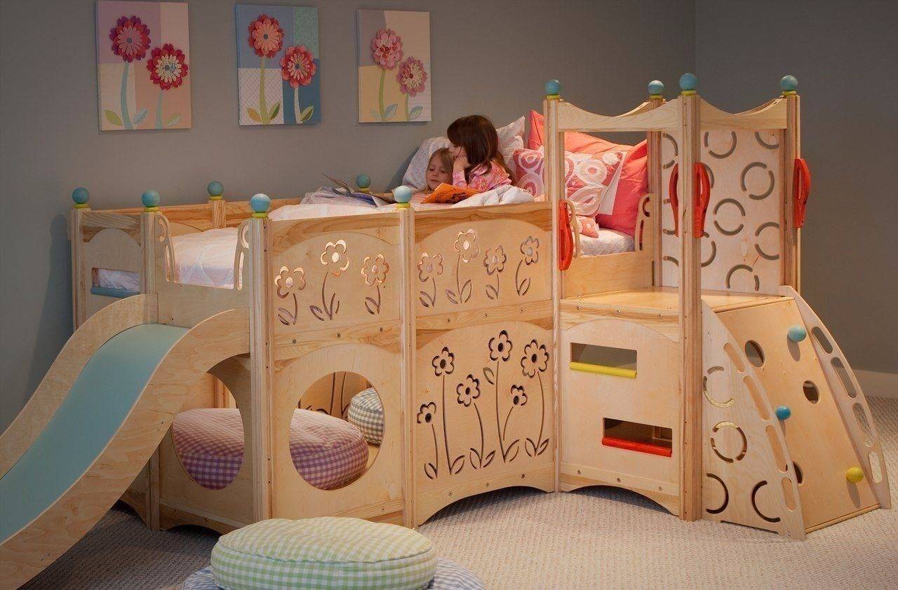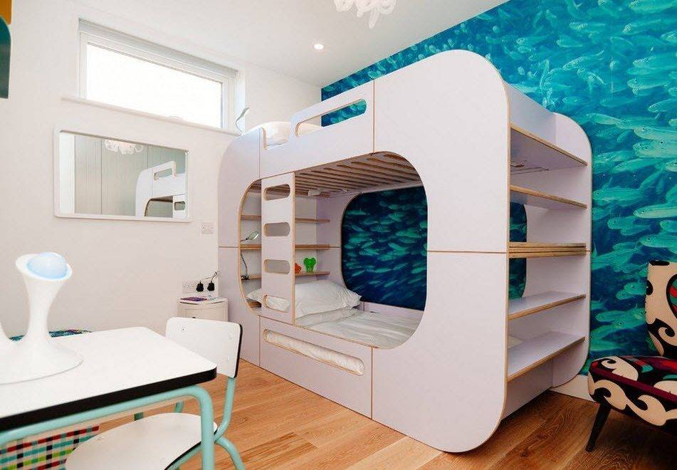 Дизайнеры интерьера придумали множество видов двухъярусных кроватей, рассчитанных не только на двух, но и на одного ребенка. Кровать можно укомплектовать рабочим столом, местом для игр или диваном.