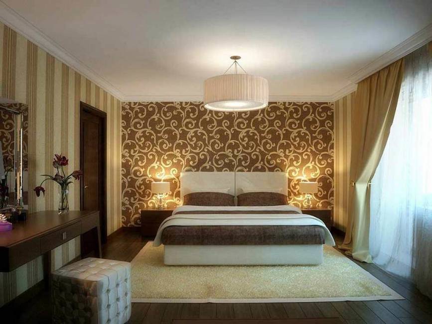 Примеры эффектного комбинирования обоев в рамках безупречного вкуса, которые можно смело рекомендовать для спальни: