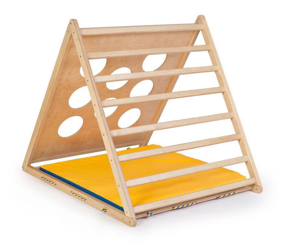 Спортивные уголки можно и нужно устраивать даже для самых маленьких. Сверлить стены для этого не обязательно. Мы нашли, например, комплекс «Треугольник» для ребят от 2 до 5 лет. Для ребят постарше – до 7 лет – тоже есть вариант спортивного комплекса, который не требует монтажа.