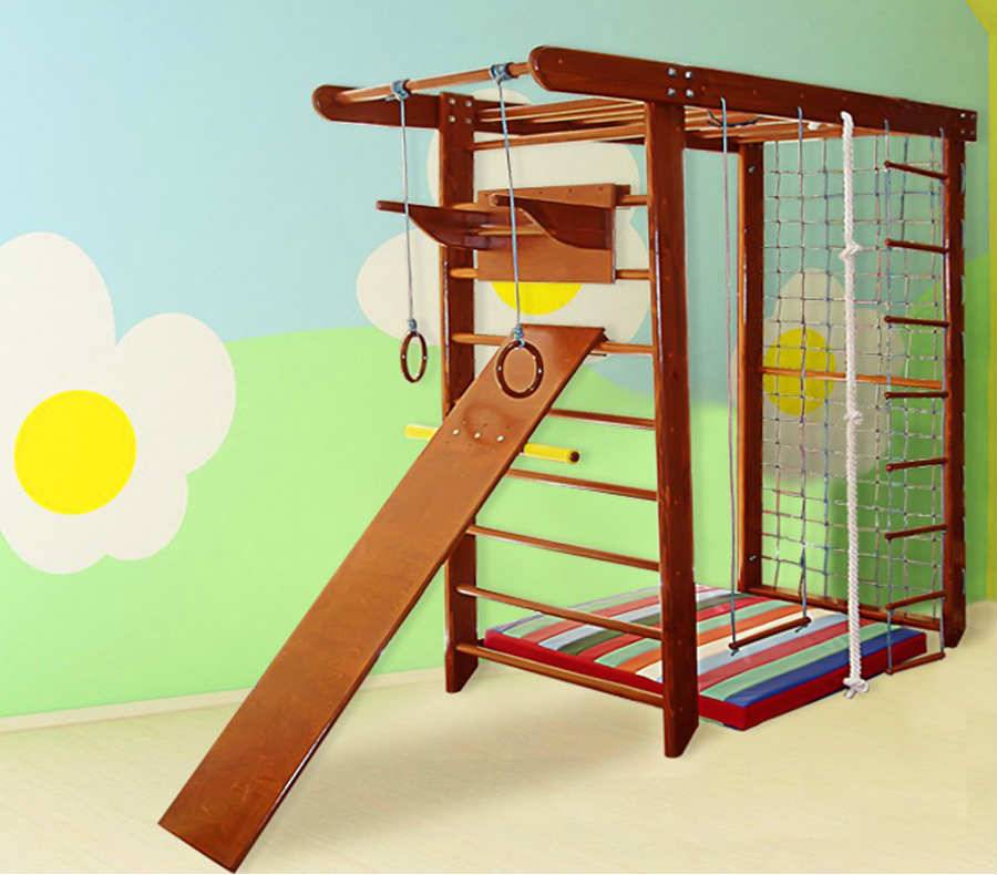 Однако если взрослые члены семьи не занимаются спортом, или отдают предпочтение посещению спортзала, тогда лучше купить в квартиру шведскую стенку для детей, которая будет представлять полноценный спортивно-игровой комплекс.