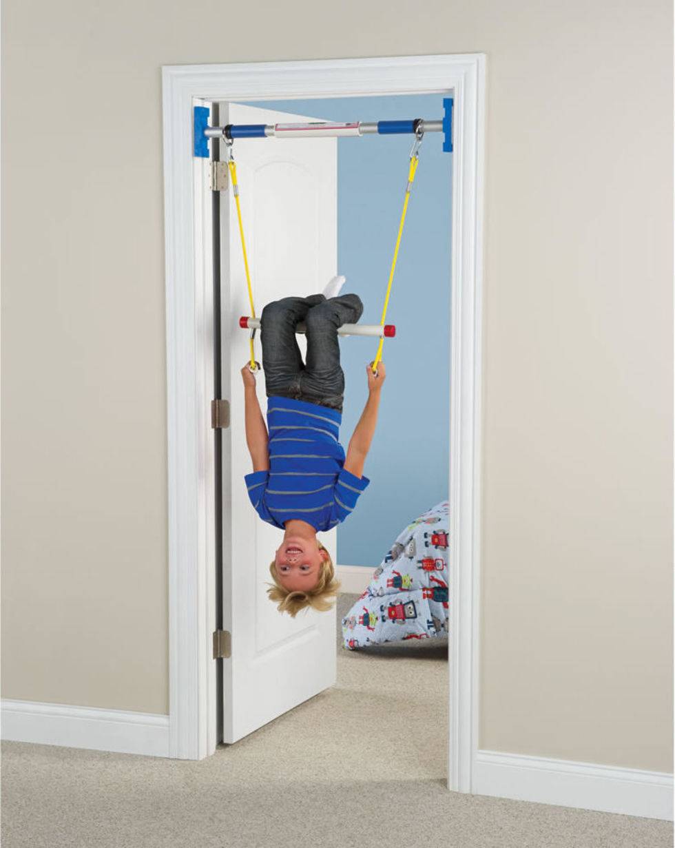 Для турника сложно не найти место: он еще компактнее и проще в монтаже, чем шведская стенка. Его можно прикрепить в дверном проеме или в узком коридоре, сделав небольшие углубления в стенах: в этом случае турник будет не просто держаться на распорках, а лежать на стене, так что за безопасность малыша можно не переживать.
