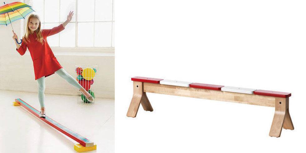 - горка или гимнастическая скамья используется для развития равновесия и тренировки мышц стоп и позвоночника;