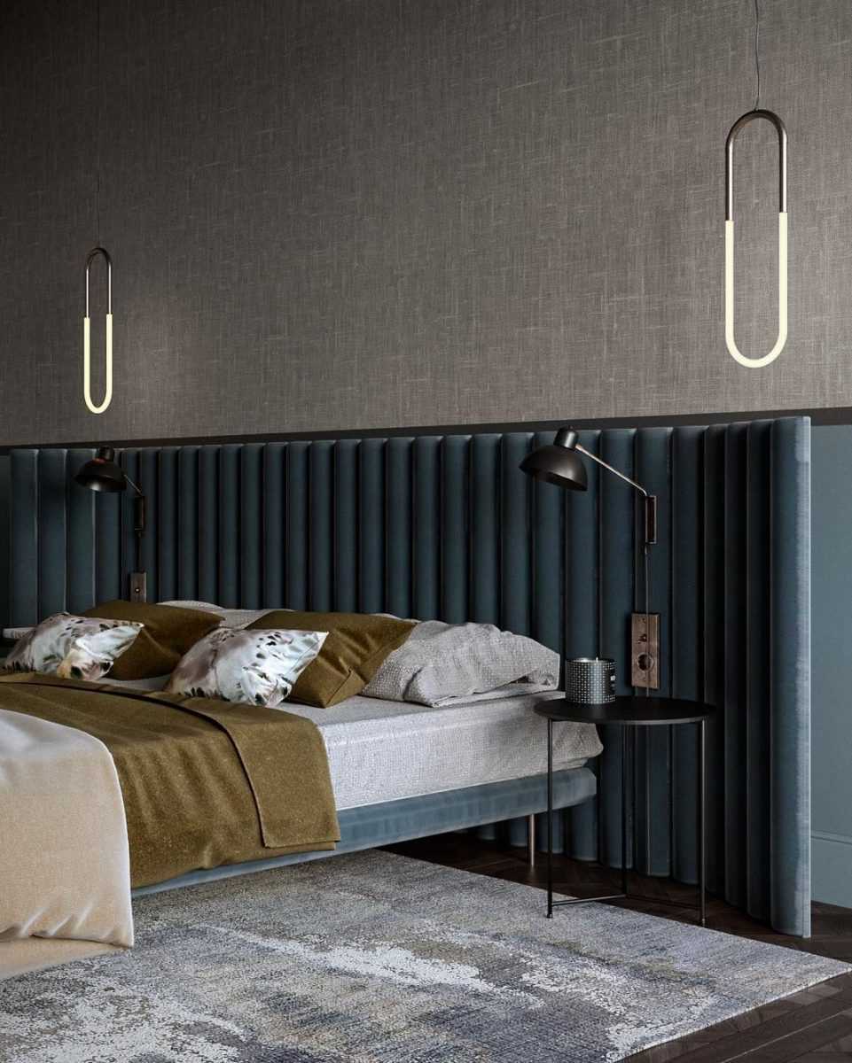 В последнее время пространство спальни стараются освободить от компьютерных столиков, стенок со встроенным телевизором, гардеробные скрыть за перегородками либо использовать шкафы-купе, которые очень популярны в 2021 году. Кровать размещают в центре комнаты, а не у стены как обычно.