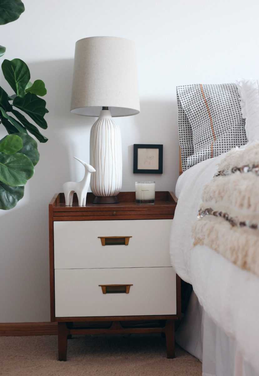 Прикроватные тумбочки станут полезным, но необязательным элементом. При отсутствии свободного места их роль может сыграть полочка над изголовьем.