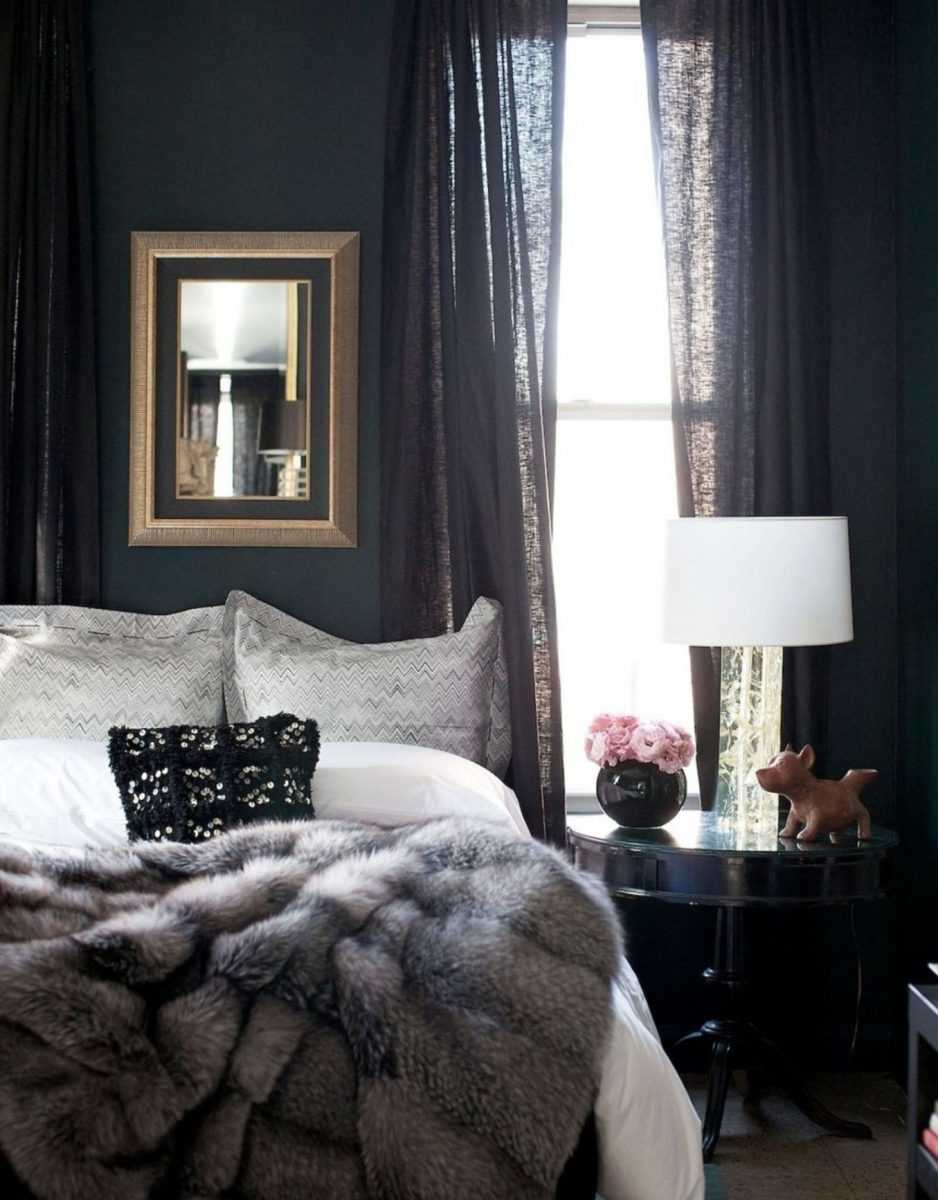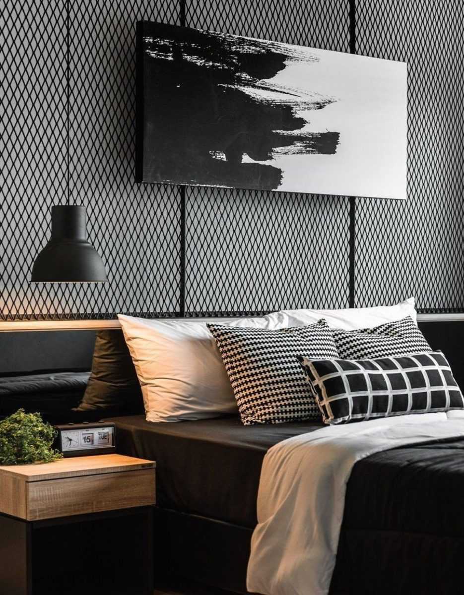 Неординарные люди могут смело делать спальню в чёрно-белых тонах. Но играть с этими цветами нужно аккуратно, так как оба довольно-таки агрессивны. Изобилие тёмного омрачит помещение, сделает его визуально меньше.