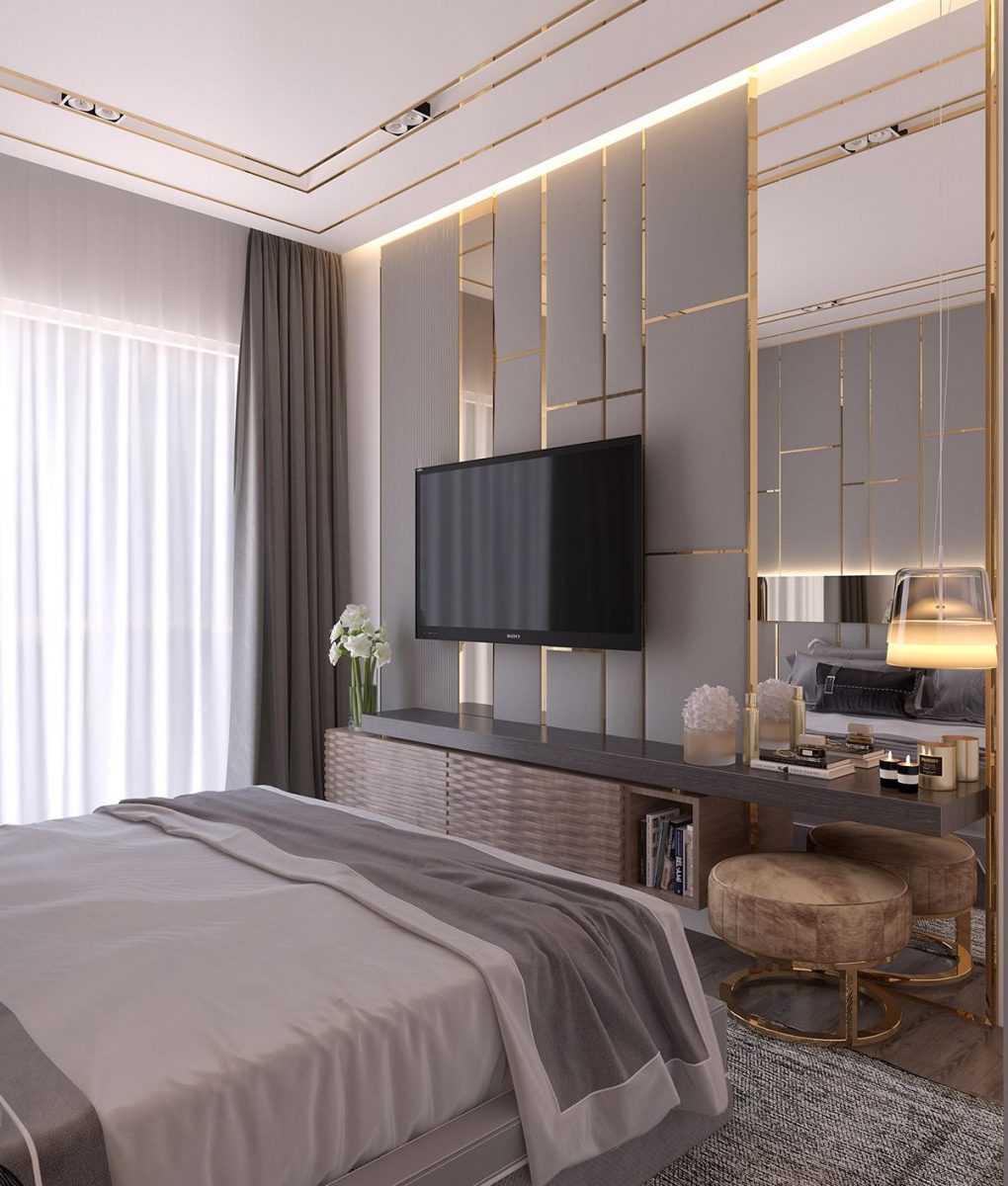 Наблюдается тенденция отказа от совмещения прикроватной зоны с кабинетом, компьютерные столики и стенки с телевизором постепенно покидают это пространство. Будуар и гардеробные зонируются при помощи перегородок.