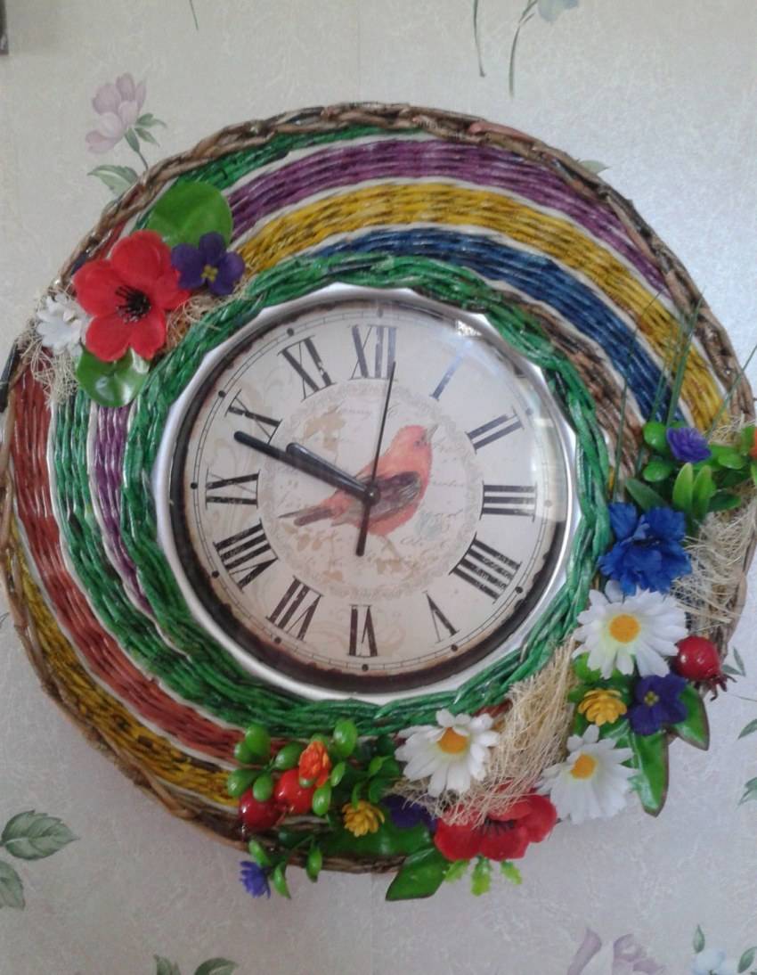 Приведем более подробный алгоритм украшения часов из газетных трубочек:
