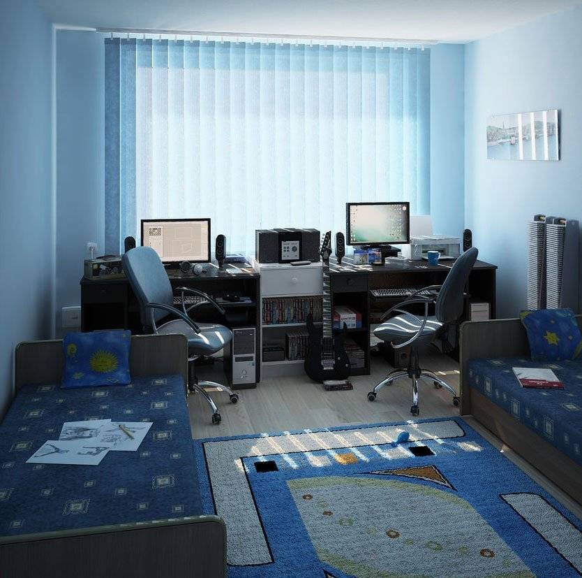 В этом возрасте мальчики могут сами принимать активное участие в оформлении своей комнаты. Пусть выберут мебель, обои, какие-то интересные вещи. Задача родителей предоставить для выбора несколько наиболее практичных вариантов. Тщательно продумайте рабочую зону, а вот пространство, которое раньше предназначалось для игр, постепенно можно начать использовать для хобби. Добавить музыкальные инструменты, большой мольберт, заменить детский спортивный комплекс на взрослые тренажеры, в соответствии с увлечениями обоих детей. При этом обязательно подумайте о хобби обоих сыновей, потому что даже в этом возрасте соперничество и обиды между братьями возможны как в раннем детстве. Внешнее оформление должно повзрослеть вместе с хозяевами комнаты. Обязательно посоветуйтесь с ними, какой стиль предпочтительнее использовать в интерьере.