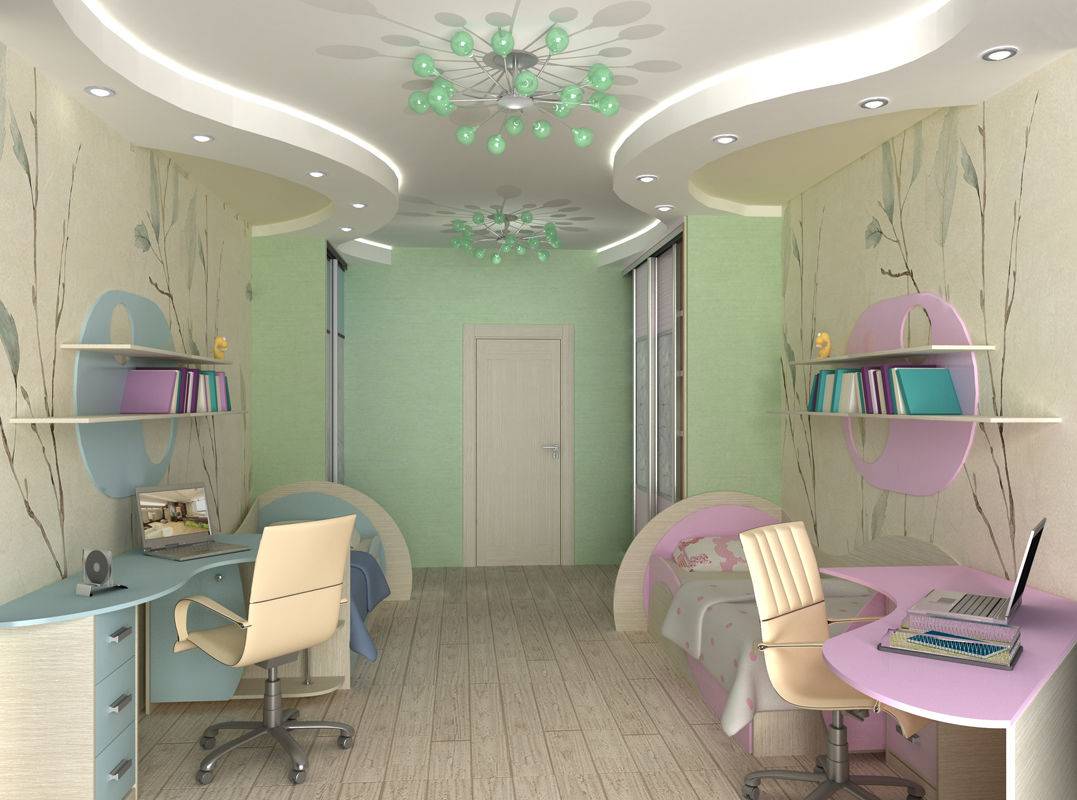 Первоначально следует определиться с зонированием, выделить место для игр, не только совместных, но и по возможности раздельных. Лучшим решением считается деление спальной зоны на две части. Рабочее пространство можно сделать общим. Интересные фото интерьеров представлены на интернет площадках или внутри литературных источников.