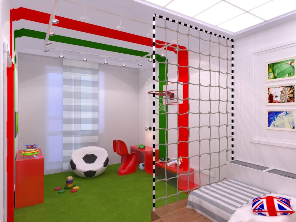 Если ваш мальчик увлекается каким-либо видом спорта, то наверняка его порадует обыгрывание этой тематики в его собственной комнате. Необязательно устраивать спортивный зал в комнате сына. Существует немало способов обыгрывания спортивной концепции – рисунок на текстиле, небольшие предметы мебели в виде спортивных снарядов и просто настенный декор с плакатами и картинами, изображающих сюжеты по выбранной теме.