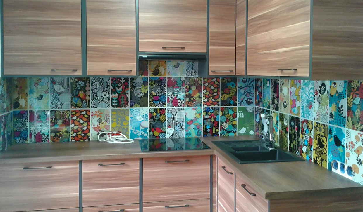 Стеклянные панели отличная замена плитке, преимущество стекла в том, что поверхность ее идеально гладкая и ровная, нет швов. Стекло может быть матовым и глянцевым, от этого зависит дизайн кухни. Под стеклом можно разместить любые изображения, это позволяет воплотить в реальность любую, даже самую уникальную идею.