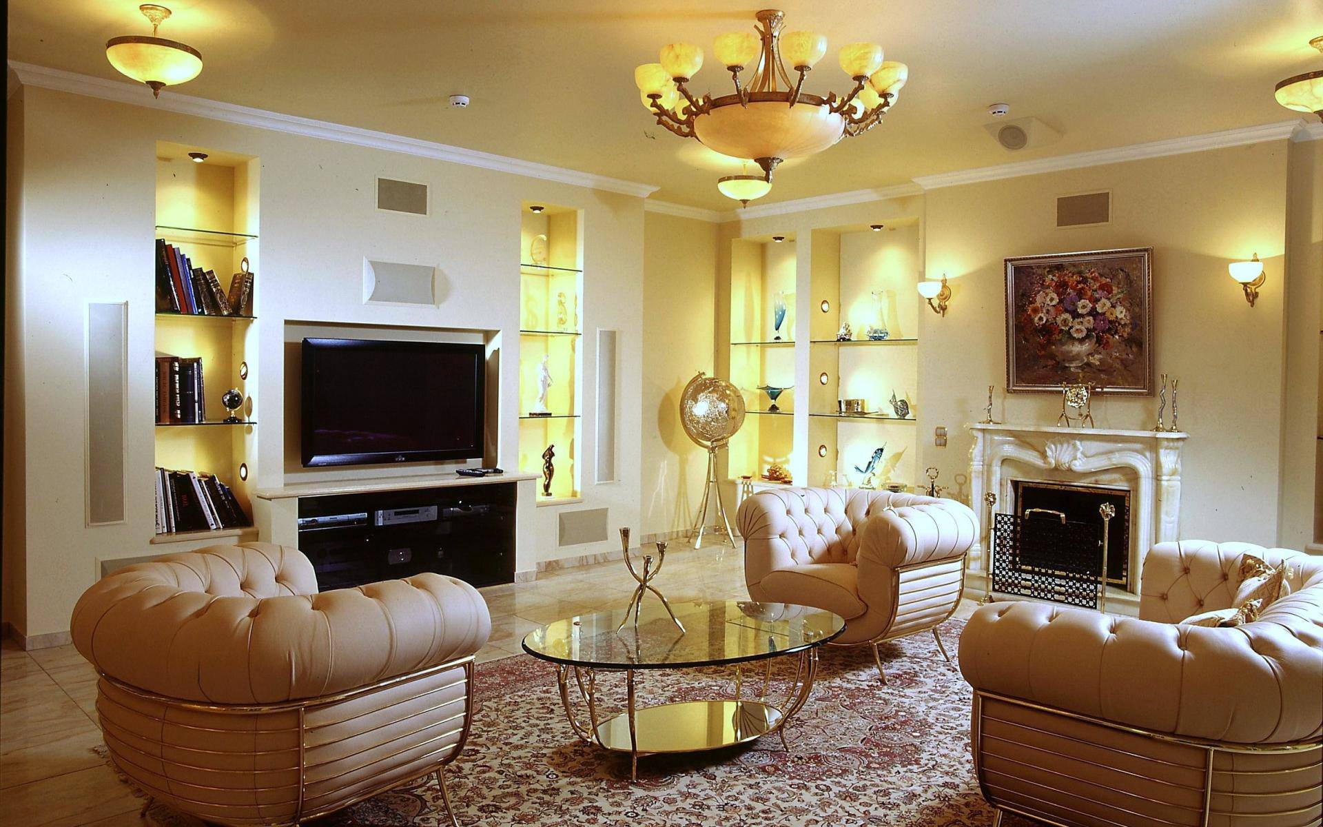 Желательно обшивку мягкой мебели выбирать однородную, не притягивающую к себе внимания, чтобы оставить возможность в зале сделать более интересные акценты, например, на картинах, камине или стереоскопических обоях.