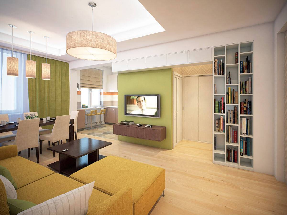 Объединить гостиную можно с кухней, коридором, спальней (если она имеется), лоджией, балконом. Все зависит от планировки и желания:
