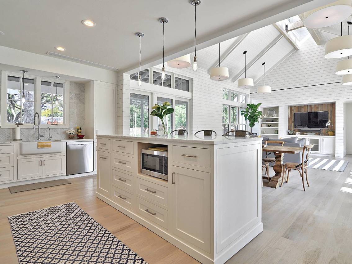 Мечта для тех, кто любит американский стиль интерьера дома и хочет островной гарнитур.