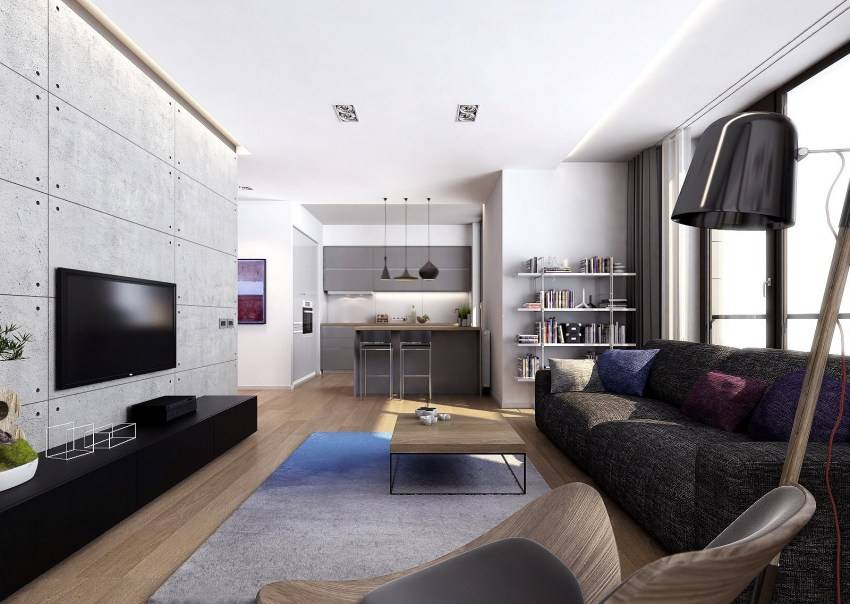 При проектировании такого помещения следует брать во внимание расстановку мебели и форму комнаты, а также ее площадь