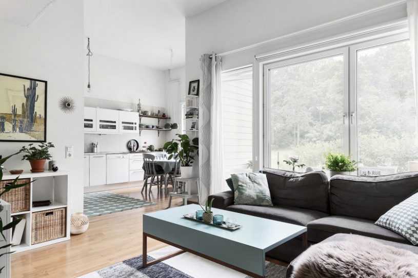 В гостиной лучше устраивать окна, площадь которых в сумме занимает не менее 20% площади всех стен. Длина, ширина и количество у окон для гостиной может быть разным. Главное – учесть соотношение между площадью остекления и площадью фона.