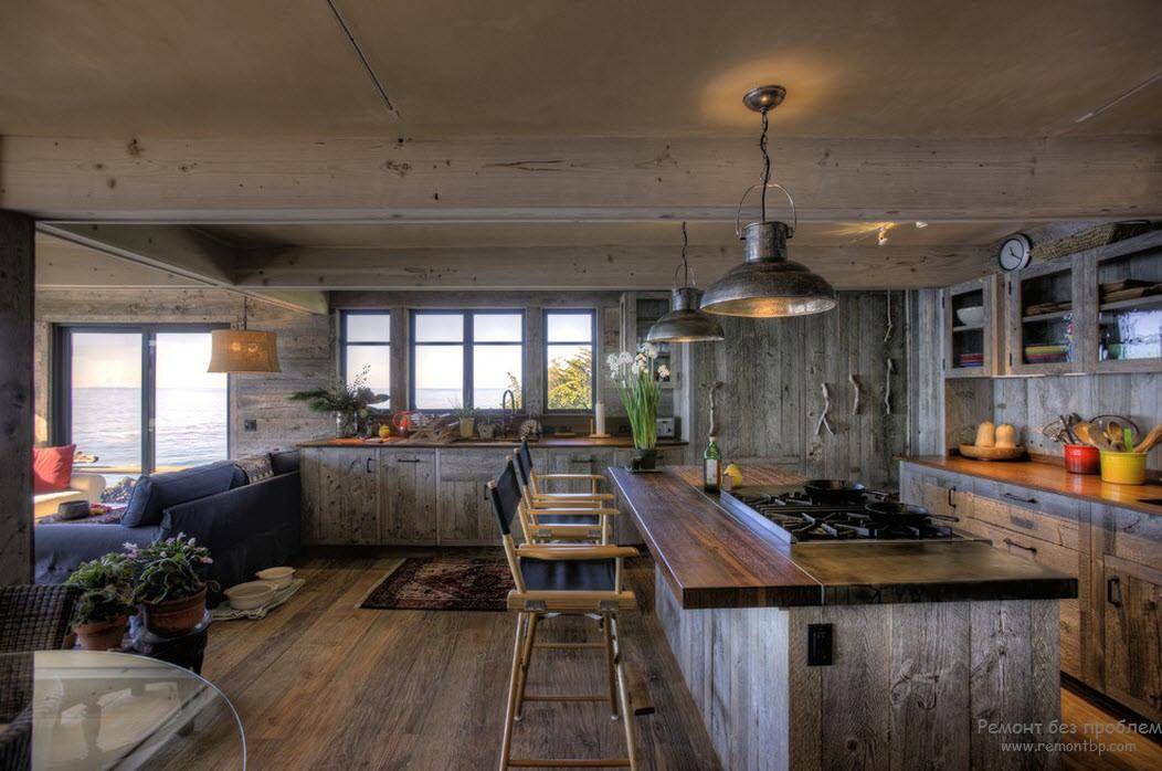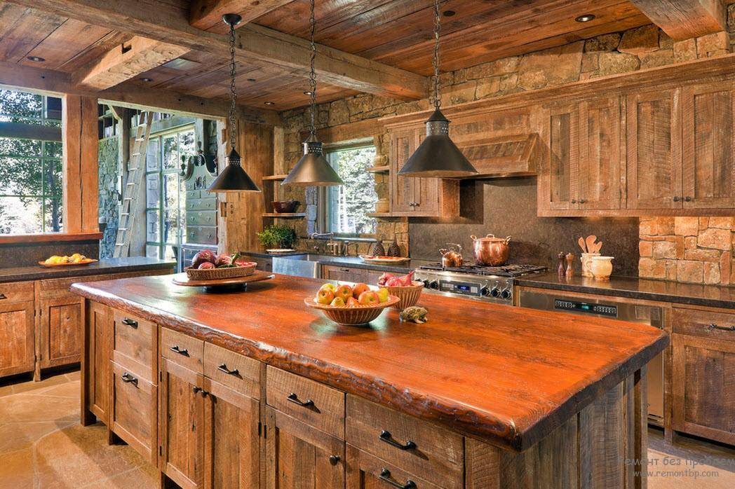 Дизайн кухни в деревянном доме преимущественно оформляется в одном из следующих стилей: